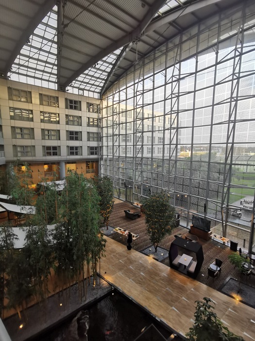 L’Atrium, avec ses 22 mètres de hauteur sous plafond, constitue la signature architecturale du lieu. Cet espace favorise la rencontre entre voyageurs et professionnels. De plus, la gastronomie, portée par des chefs créatifs, enrichit l’expérience. D’autres projets sont déjà programmés : spa, piscine réouverte, modernisation technique et orientation écologique avec l’installation de panneaux solaires.